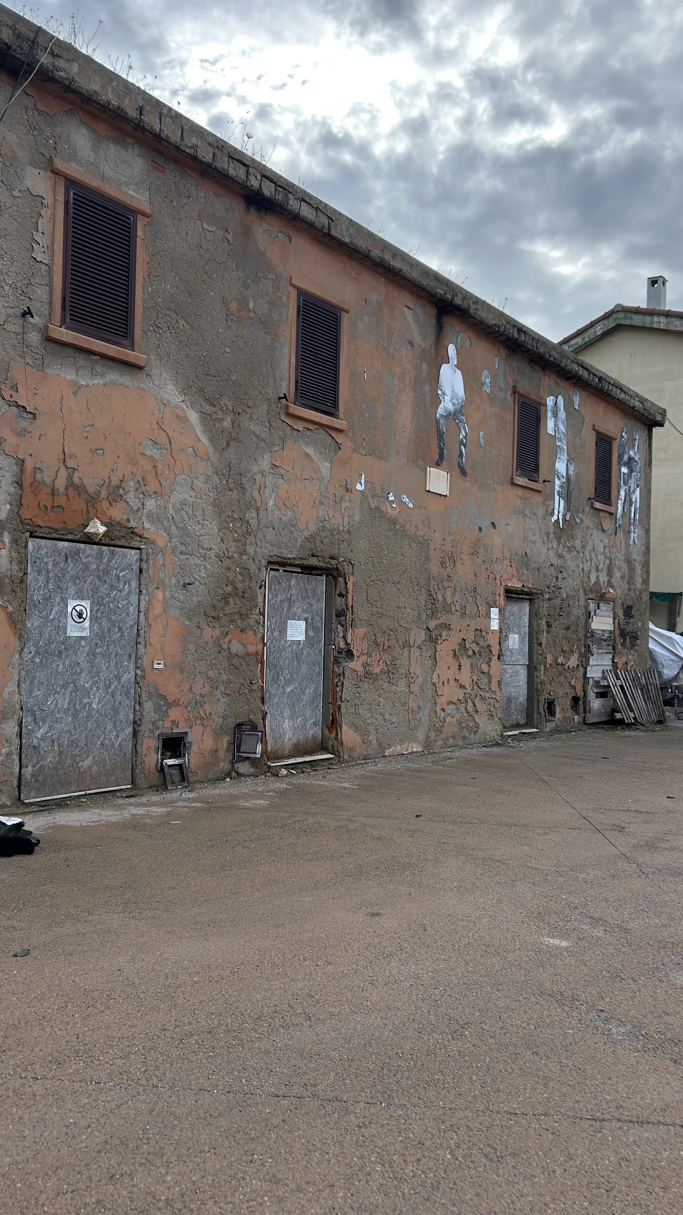 Ce bâtiment accueillait autrefois la gendarmerie du village minier d’Argentiera. Après la fermeture de la mine, l’ensemble du site 5 usine, infrastructures, maisons et voirie) a été vendu en un seul bloc à une famille dans les années 1980. Un projet de réhabilitation est alors engagé, reposant sur des transformations lourdes et souvent illégales, notamment des modifications des bâtiments pour contourner les lois de rénovation. Le chantier est finalement stoppé par la justice, laissant le village dans un état inachevé. Aujourd’hui, même lorsque certains bâtiments sont revendus, les travaux de restauration restent impossibles : la voirie et les infrastructures communes n’appartiennent pas aux nouveaux propriétaires, ce qui bloque toute réhabilitation cohérente.