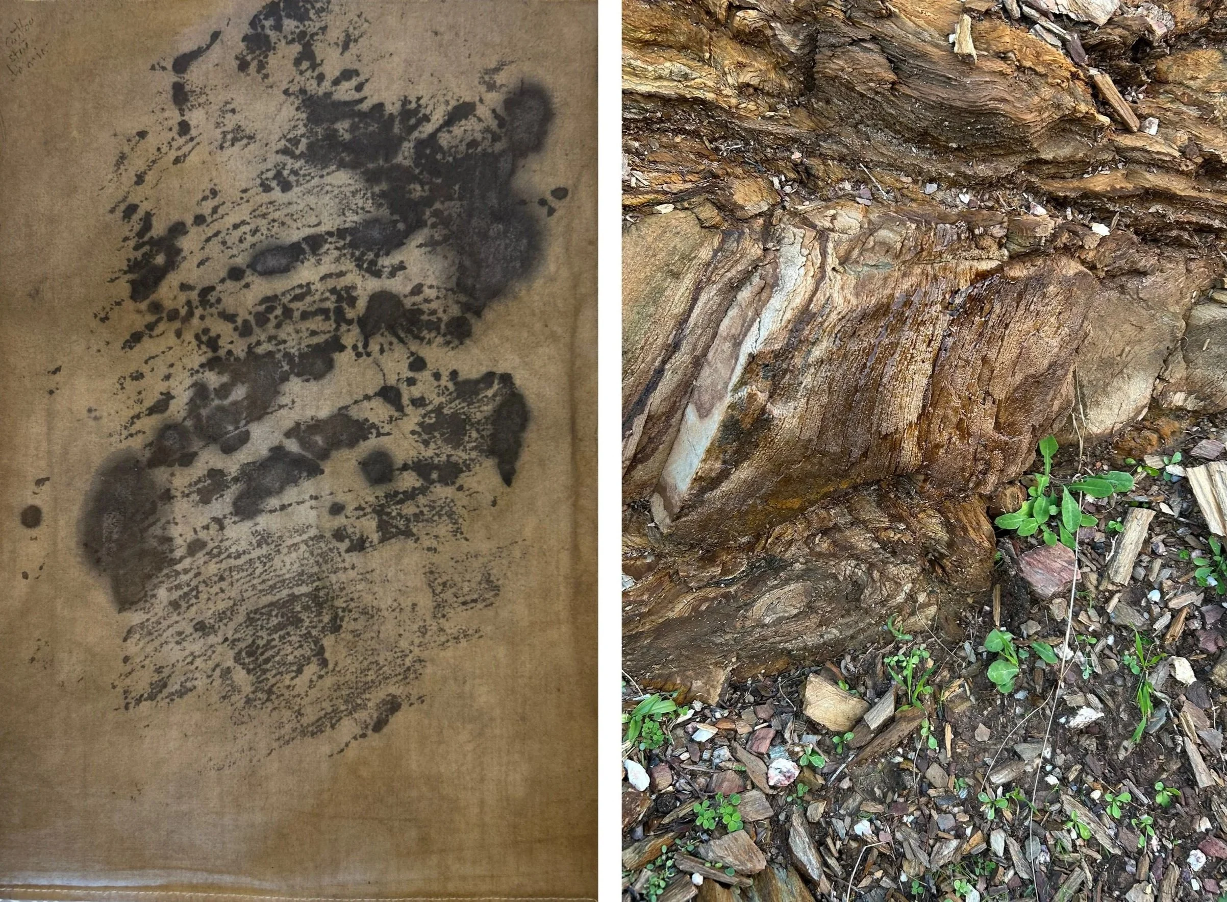 Una pietra lamellare che sporgeva dalla roccia
