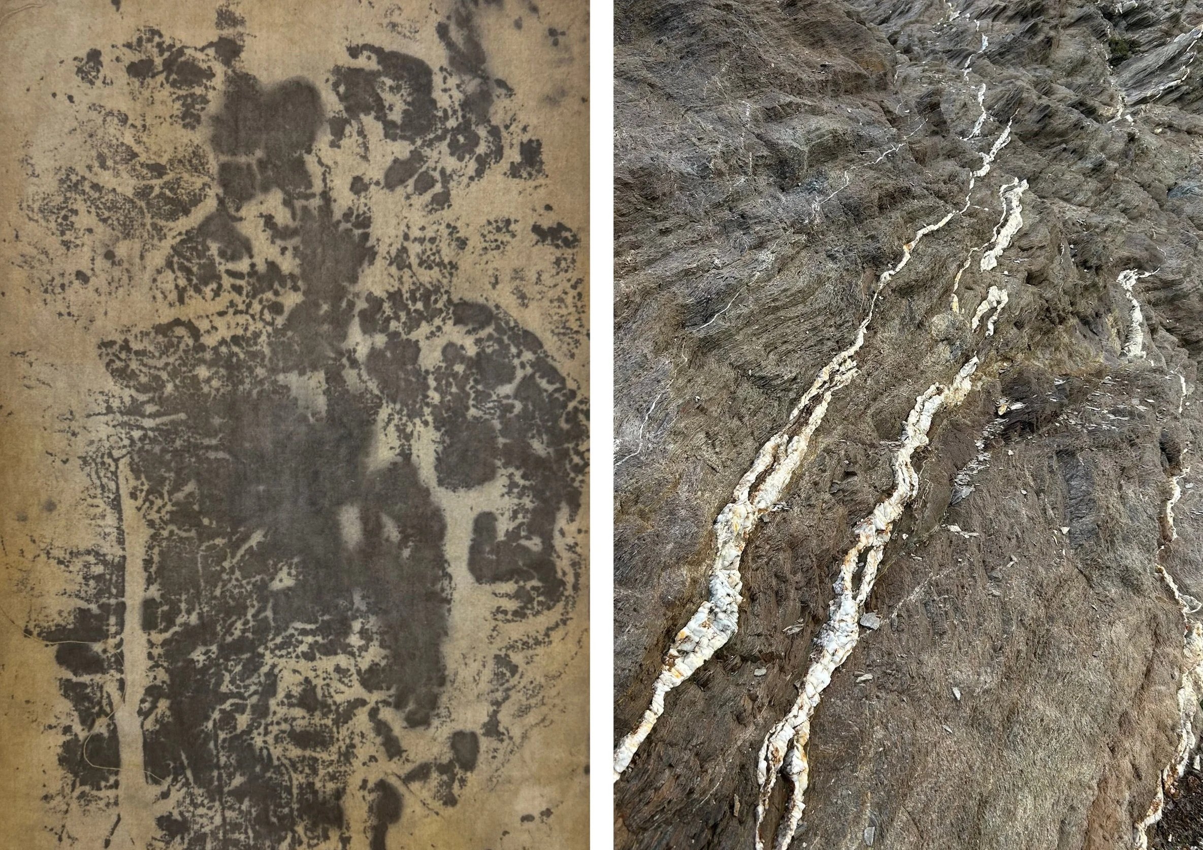 Les phases de compression et de relâchement ont généré plis, fissures et cassures, donnant à la roche cet aspect de mille-feuilles caractéristique. Dans ces fractures, de la silice s’est infiltrée et a cristallisé en quartz.