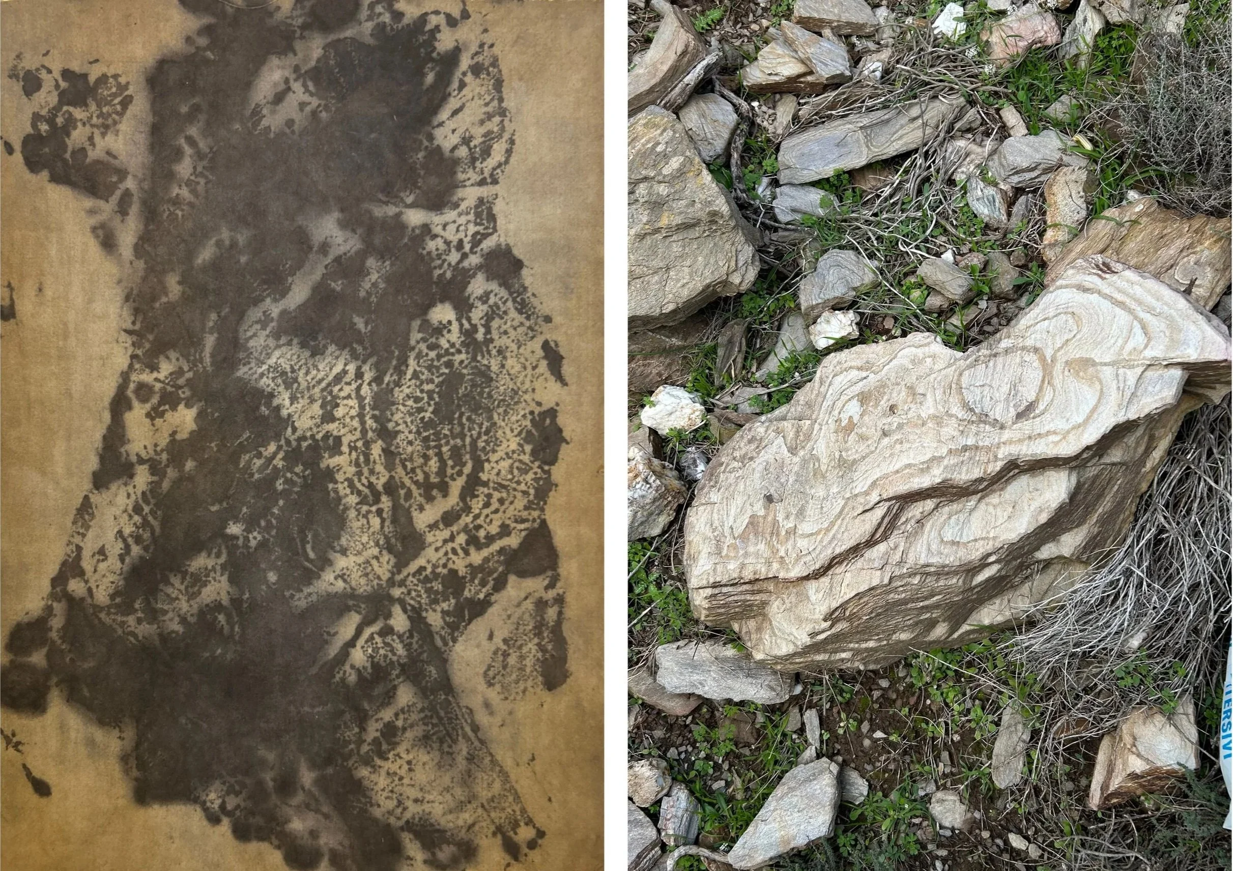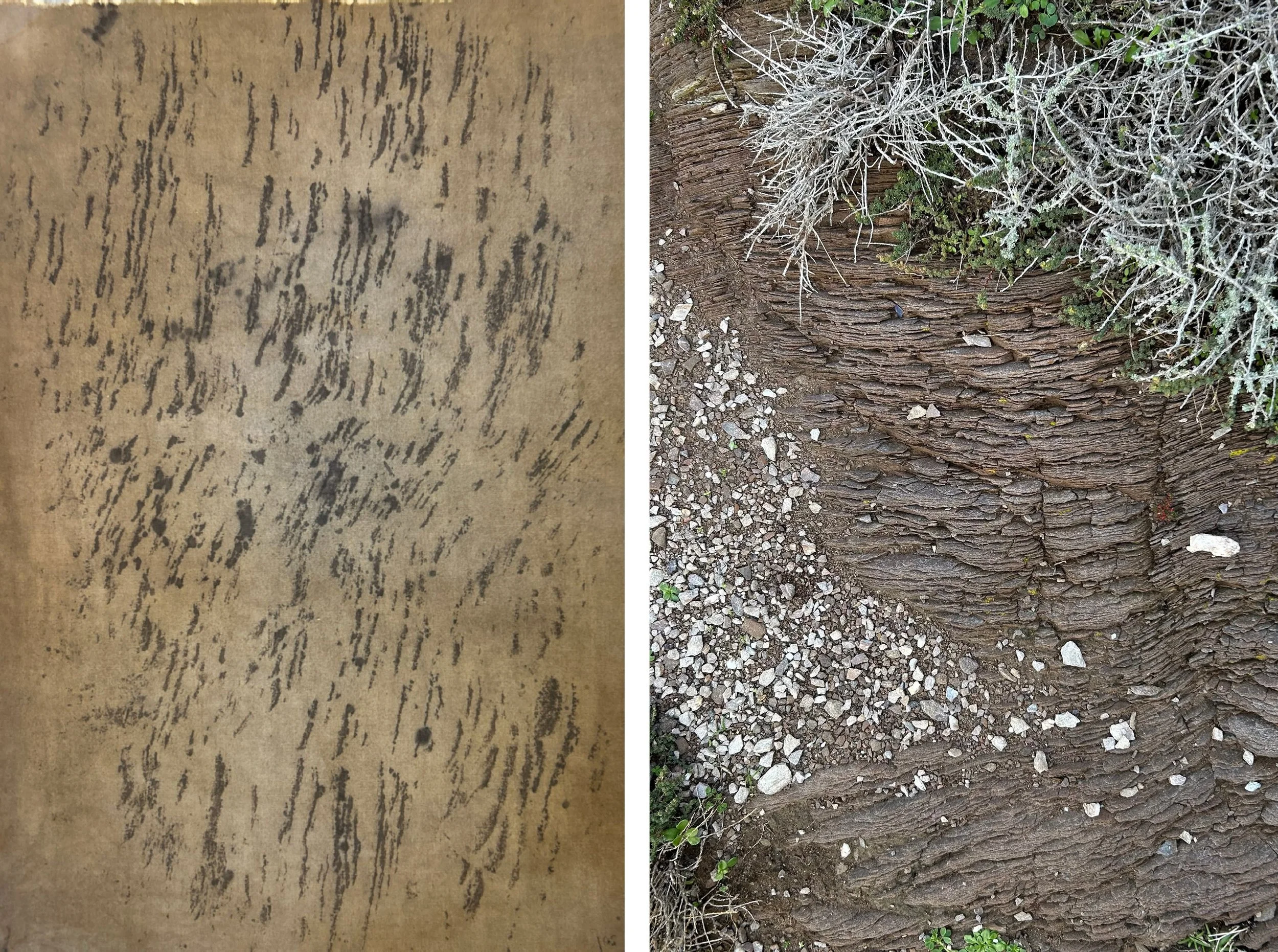 À Argentira, les roches observées présentent un aspect feuilleté, composé de plaques successives issues de sédiments accumulés sur des millions d’années. Ces roches, à l’origine sédimentaires, ont ensuite été transformées par les mouvements tectoniques en roches métamorphiques. Une roche métamorphique est une roche qui a été profondément transformée à l’état solide par des variations intenses de température, de pression et/ou de fluides, créant de nouveaux minéraux et une nouvelle texture.